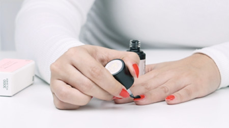 Apply a thin coat of Gel Polish. Avoid getting any polish on skin or cuticles. For best results, apply polish over edge of nail too (capping).
