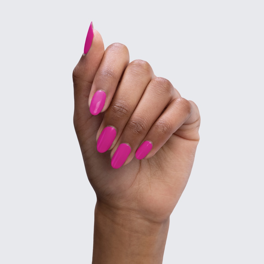 Neon barbie pink. Semi-gloss. Bright. Opaque. Cool undertone.